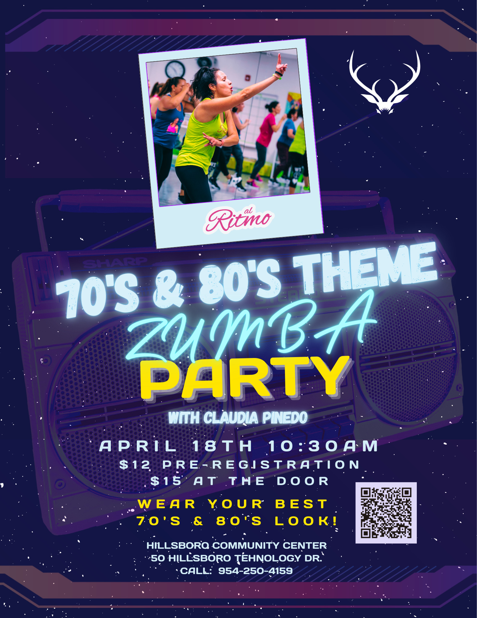 Join us on Saturday, April 18th at 10:30 am for our 70's & 80's Theme Zumba Party! πͺ©πΆ It's going to be a blast as we throw it back to the funky beats and bold fashion of these iconic decades. π